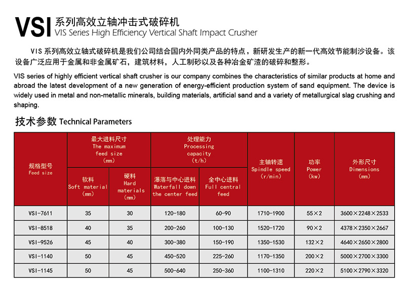 VSI系列高效立轴冲击式破碎机产品介绍